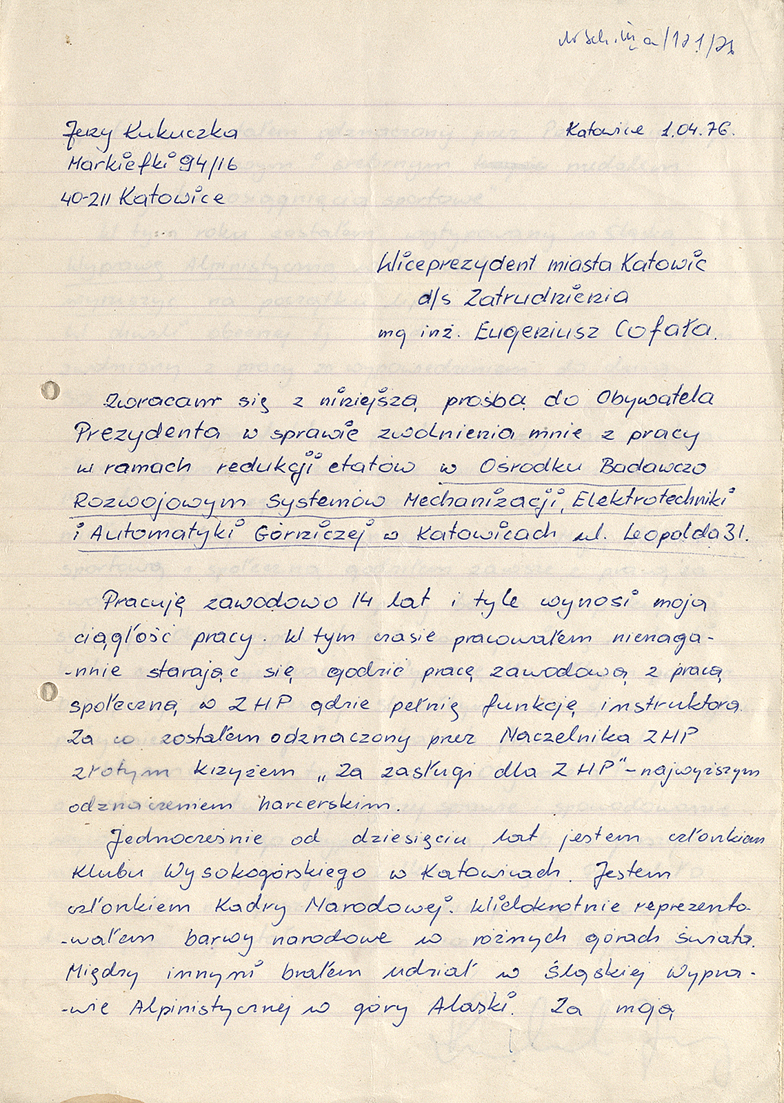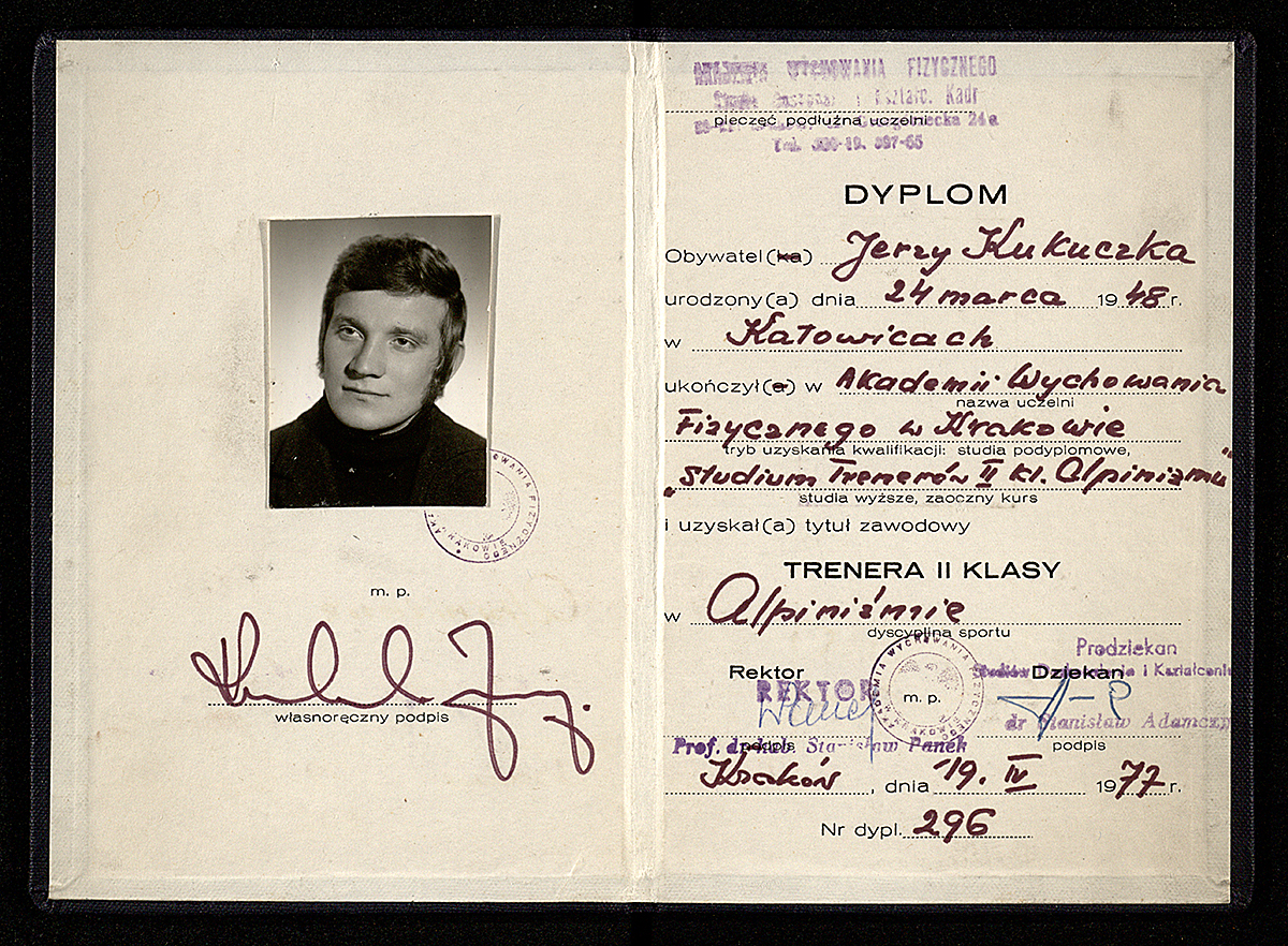 Tak się złożyło, że 1 września 1962 roku, znalazłem się na pierwszej szychcie w Zakładach Wytwórczych Urządzeń Sygnalizacyjnych w Katowicach. (…) I ja oczywiście poszedłem do szkoły zawodowej, wieczorowej, także wiesz, czternastoletni chłopak i to już na szóstą do roboty, o piątej trzeba było wstawać. No i to pamiętam, przeżyłem dosyć mocno… bo wiesz, dzieciaki, rówieśnicy, chodzą jeszcze gdzieś tam do szkoły, a ja już chodzę do roboty. (…) Ale tam się spotkałem też już z turystyką. Pojechałem raz na jakiś rajd, drugi raz. Zacząłem zdobywać odznaki GOT-u, brązowa, srebrna…” Fragment wywiadu Macieja Biegi z Jerzym Kukuczką.