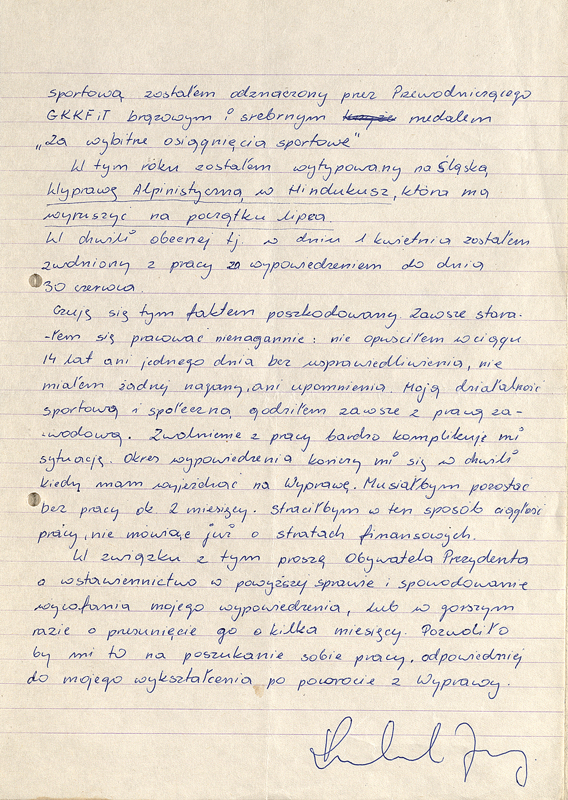 W roku 1965 (...) kolekcjonowałem znaczki i plakietki, wędrując z klubowymi grupami po Beskidach i Karkonoszach. Trenowałem też podnoszenie ciężarów w Hutniczym Klubie Sportowym "Szopienice". W trójboju uzyskałem nawet dobry wynik – 325 kilogramów i miałem wystartować w zawodach. Nie wystartowałem.