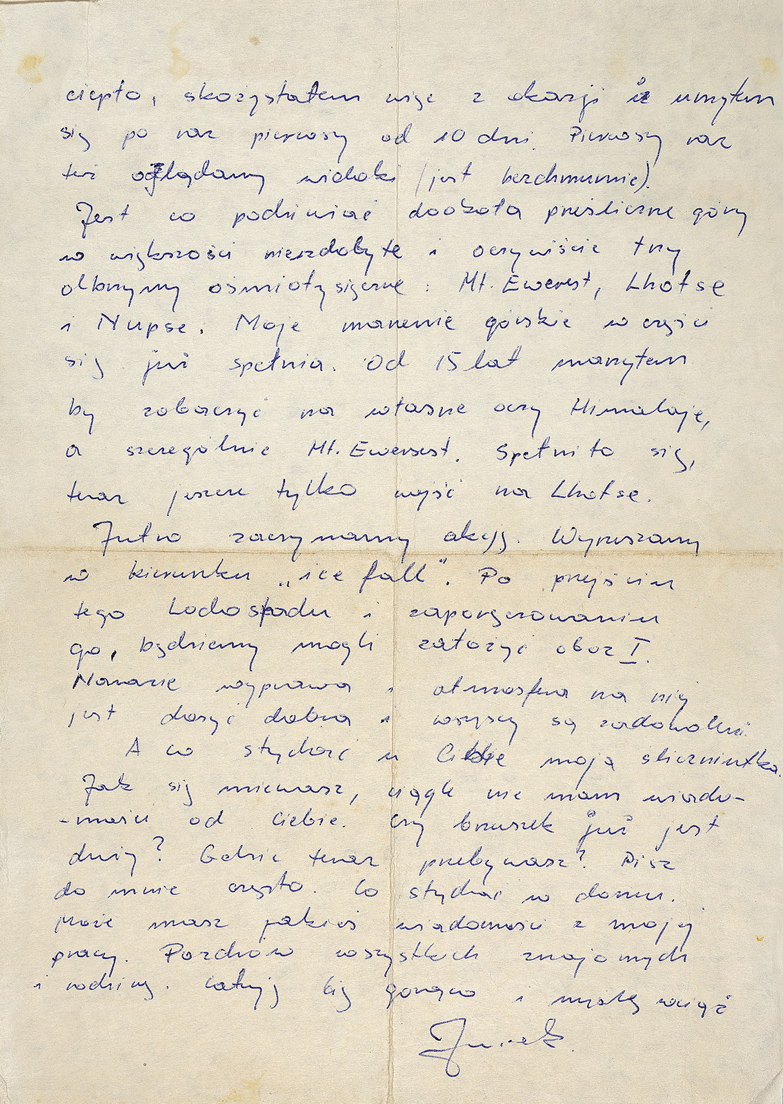 - Mount Everest, 19/05/1980. The summit was conquered by Jerzy Kukuczka and Andrzej Czok.