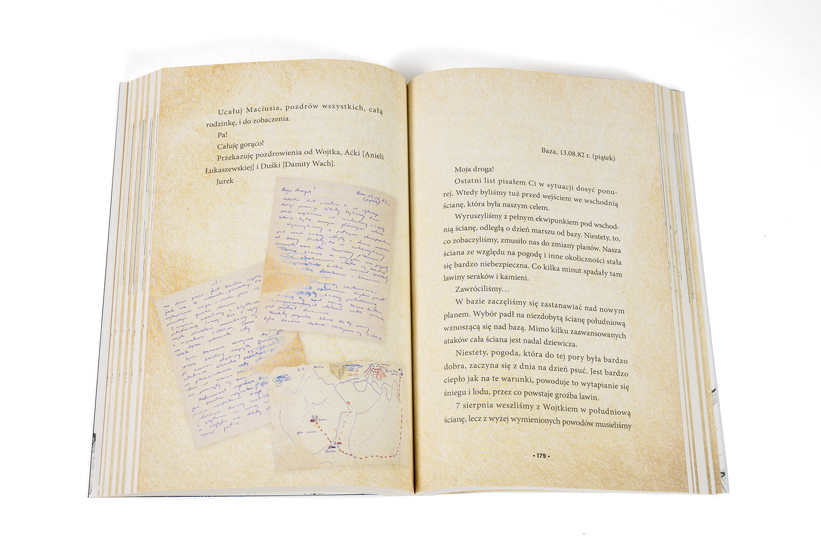 Nośnikiem emocji w tej publikacji są również dotąd niepublikowane listy Jerzego Kukuczki, wysyłane do żony spod ośmiotysięczników. Znajdujemy w nich relacje z wypraw wysokogórskich oraz refleksje Jurka na różne tematy około górskie. Przede wszystkim zaś rzucają nowe światło na postać Kukuczki, a także uzupełniają relacje pomiędzy małżonkami. Udostępnienie prywatnej korespondencji wzbogaca narrację oraz obrazuje specyfikę utrzymywania relacji na odległość z bliską osobą. Przypomnijmy, że listy te wyruszały spod najwyższych gór świata i nie zawsze docierały do odbiorcy, podobnie jak odpowiedzi. Gratką dla fanów Kukuczki mogą być z kolei skany autentycznych rękopisów Kukuczki.